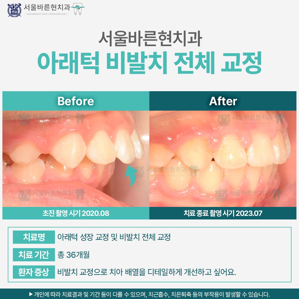 치료명 : 아래턱 성장 교정 및 비발치 전체교정