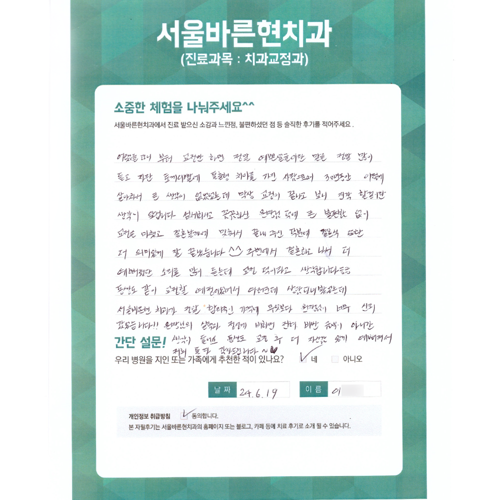섬세하시고 꼿꼿하신 원장님 덕에 큰 불편함 없이 교정을 마쳤고 결혼 날짜에