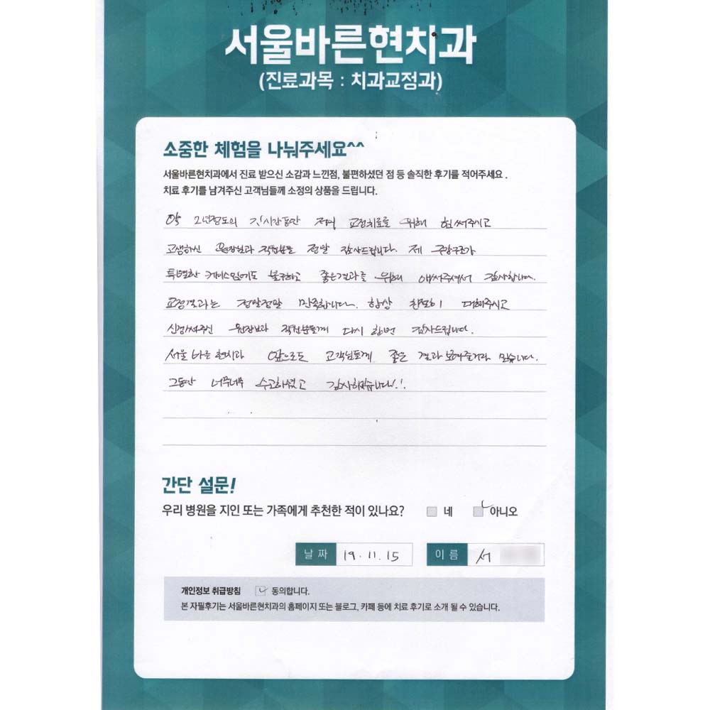 서울바른현치과 앞으로도 고객님들께 좋은 결과 보여줄 거라 믿습니다.