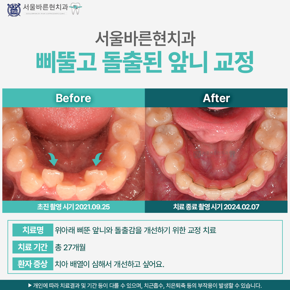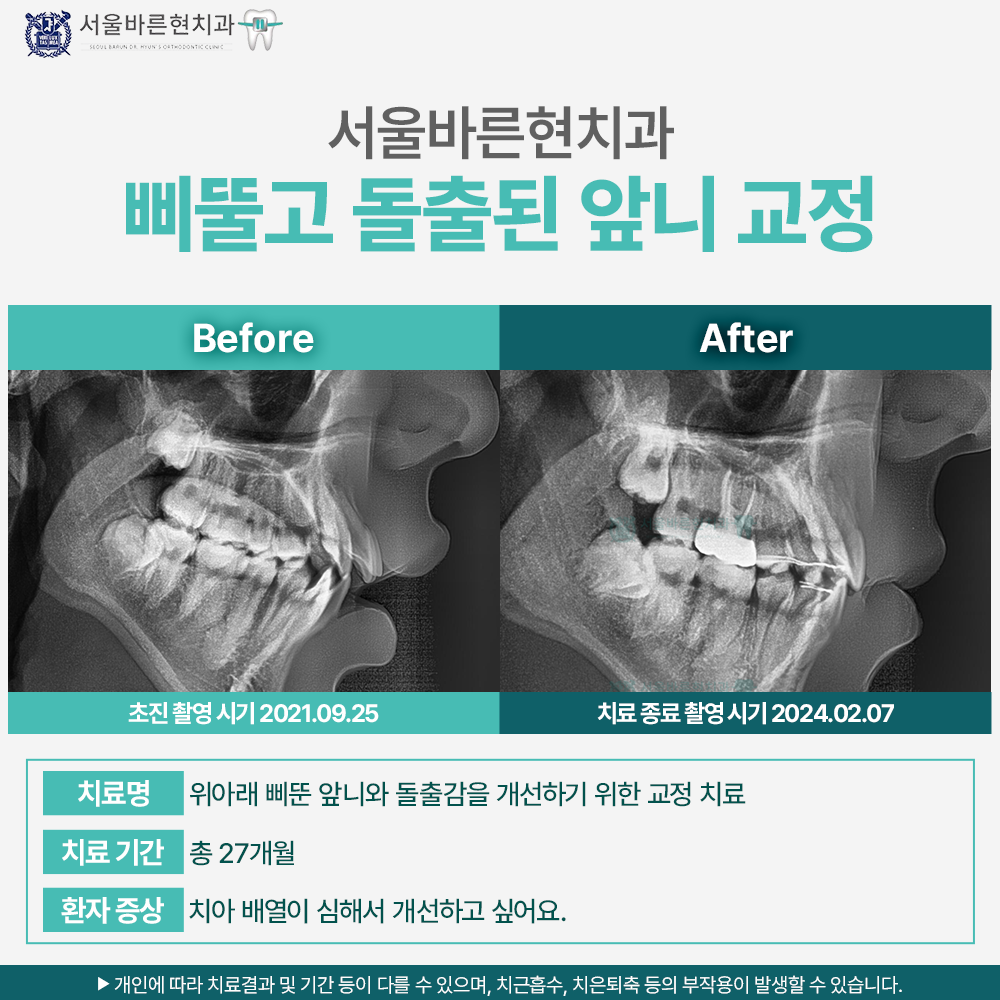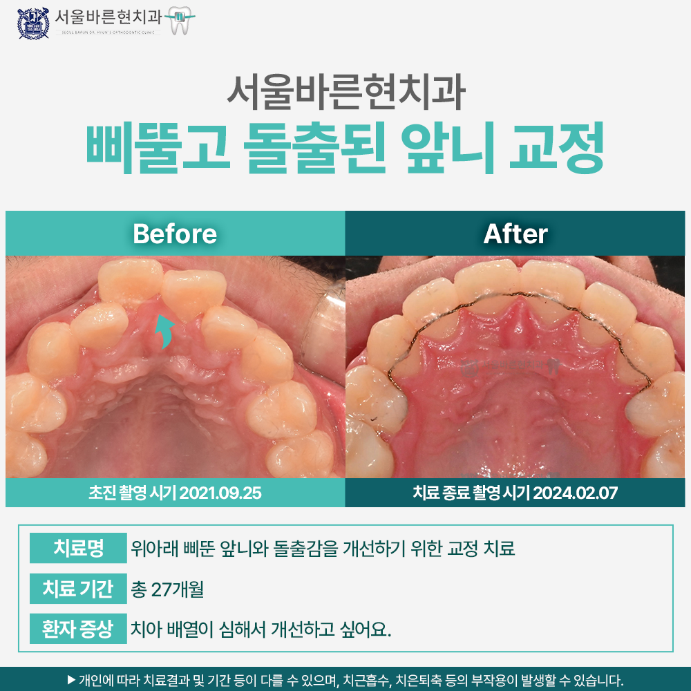부산교정치과 삐뚤고 돌출된 앞니 교정