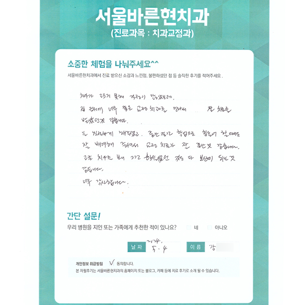 힘들어 할 때도 잘 배려해 주셔서 교정치료가