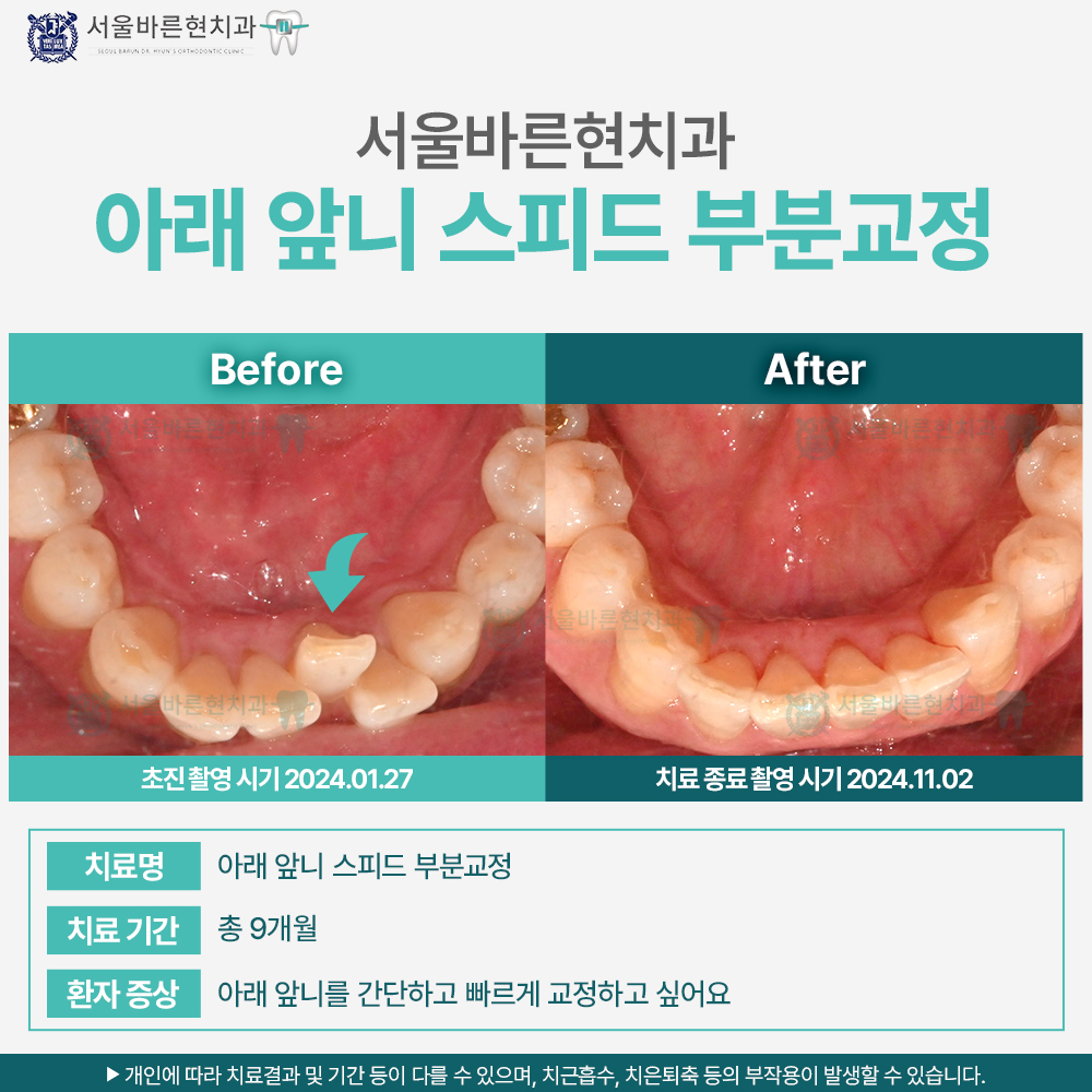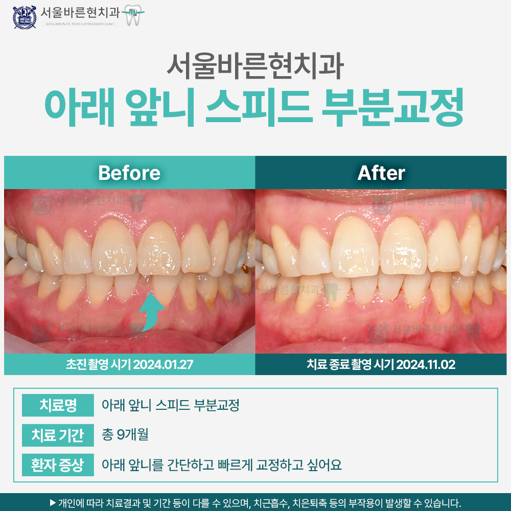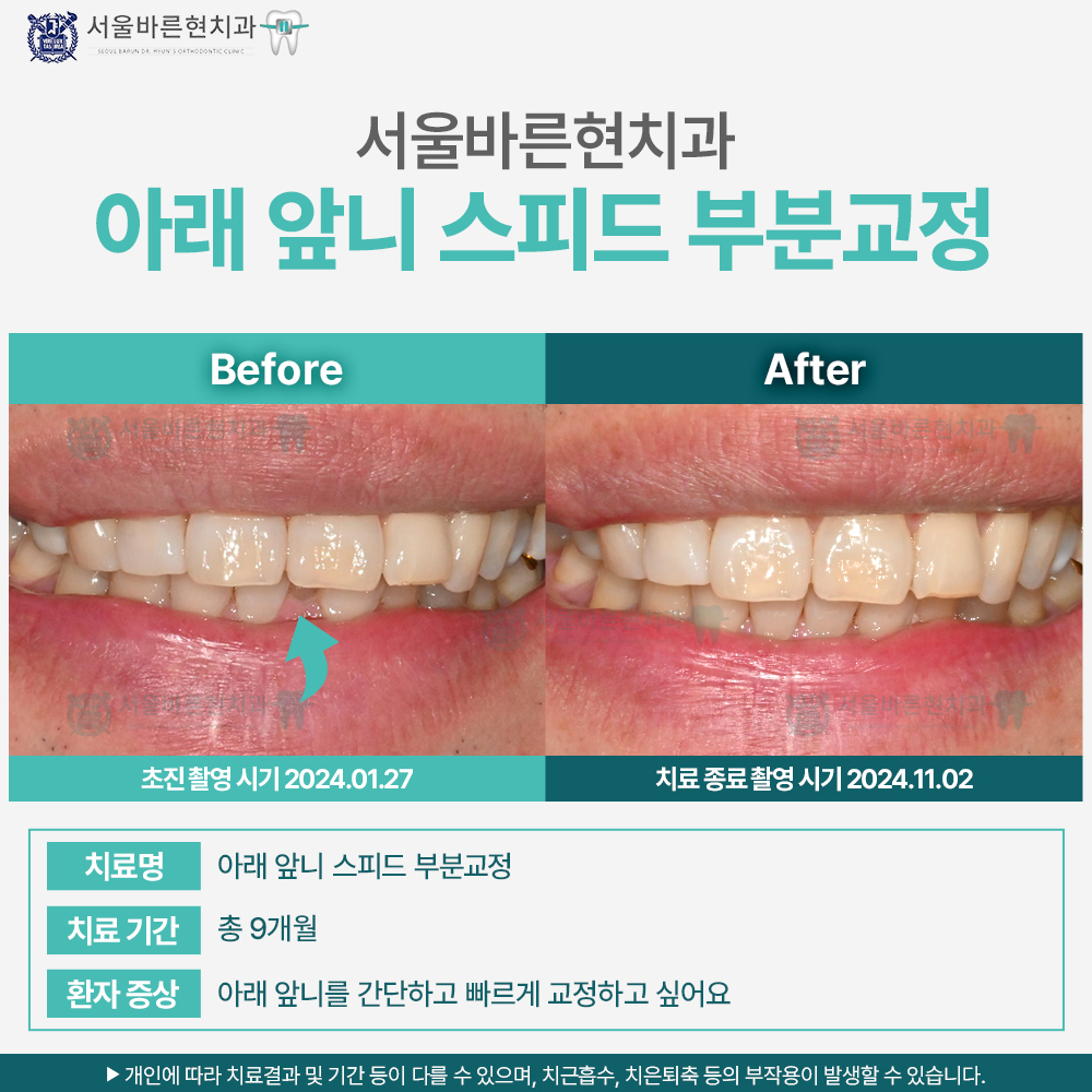 증상 : 아래 앞니를 간단하고 빠르게 교정하고 싶어요.