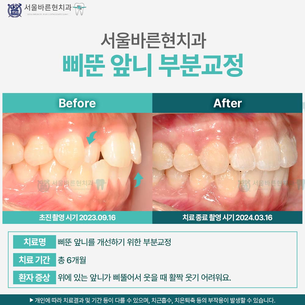 치료명 : 삐뚠 앞니를 개선하기 위한 부분교정