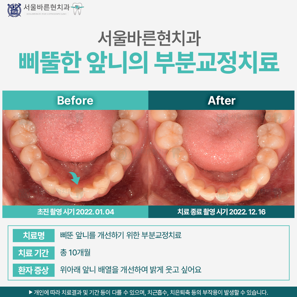 치료명 : 삐뚠 앞니를 개선하기 위한 부분 교정치료