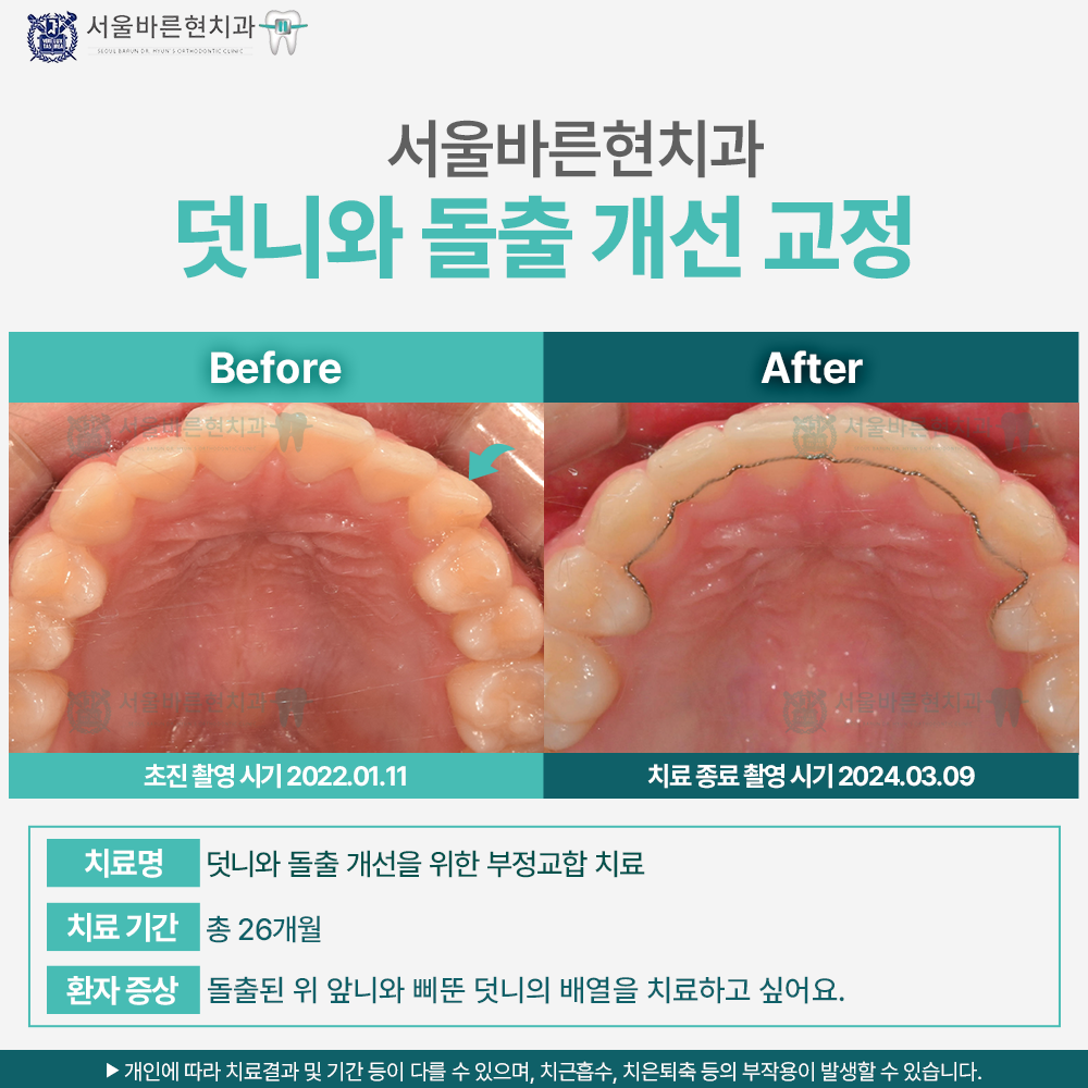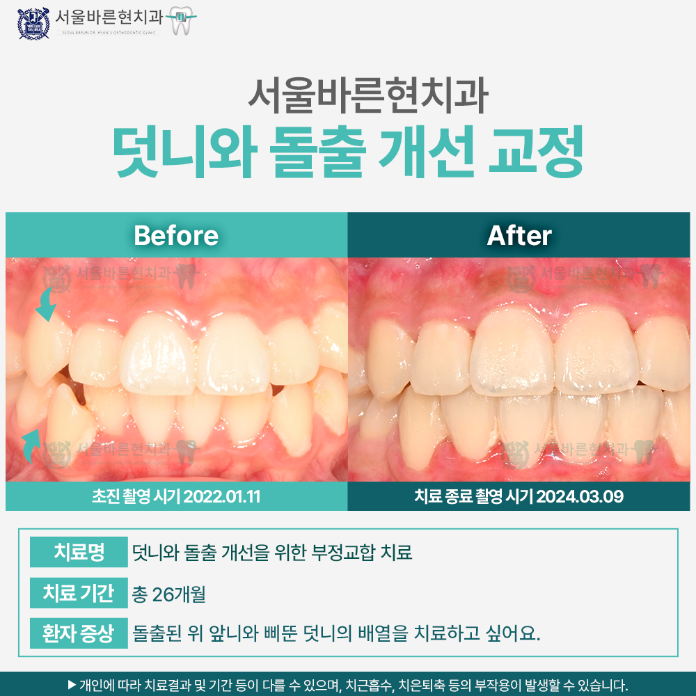 치료명 : 덧니와 돌출 개선을 위한 부정교합 치료