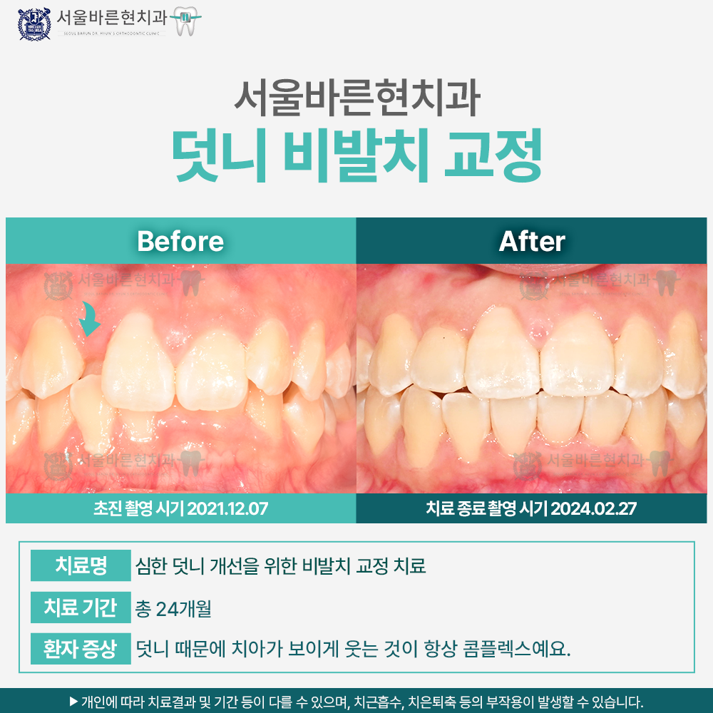 치료명 : 심한 덧니 개선을 위한 비발치 교정 치료