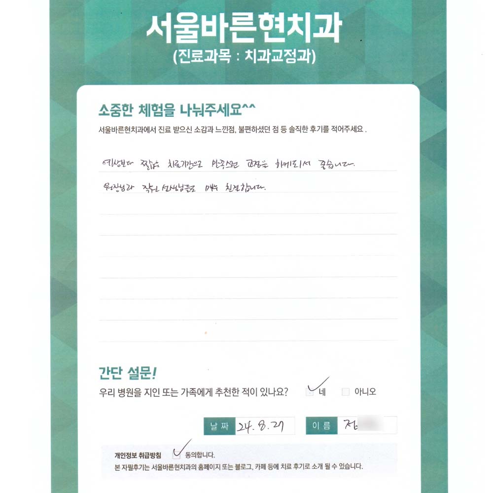 여러분의 치아 건강을 위해 항상 최선을 다하는 서울바른현치과가 되겠습니다. 감사합니다! :)