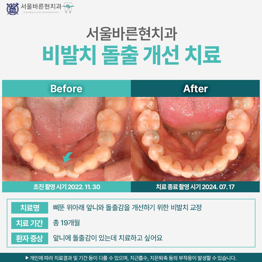 증상 : 앞니에 돌출감이 있는데 치료하고 싶어요.