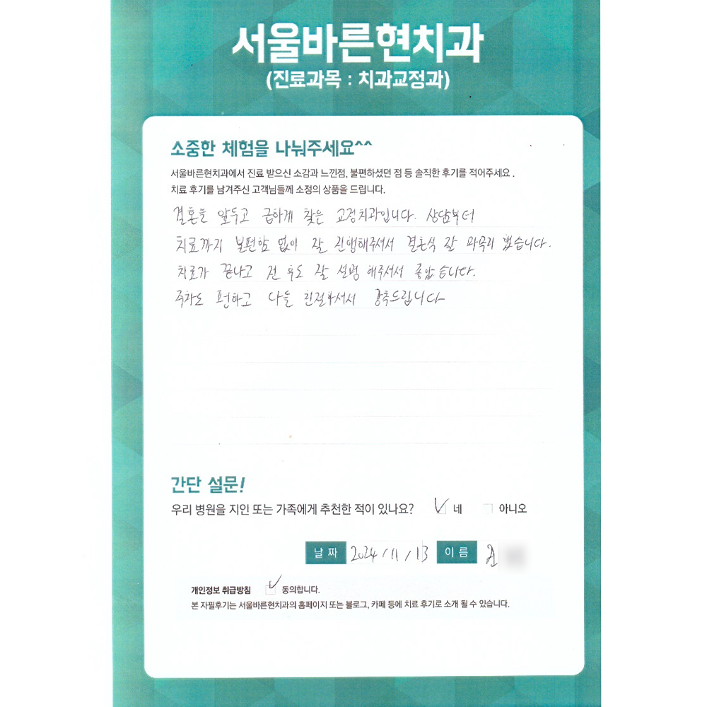 결혼을 앞두고 급하게 찾은 교정치과입니다.
