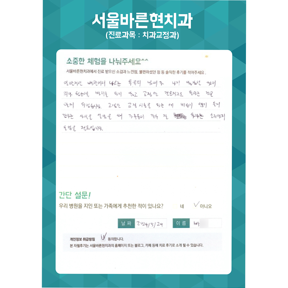 발치를 하지 않고 교정만 전문적으로 된다는 것을 알게 되었습니다.