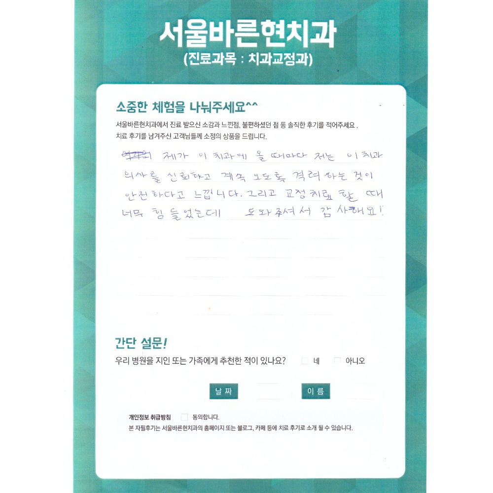 그리고 교정치료 할 때 너무 힘들었는데 도와주셔서 감사해요!