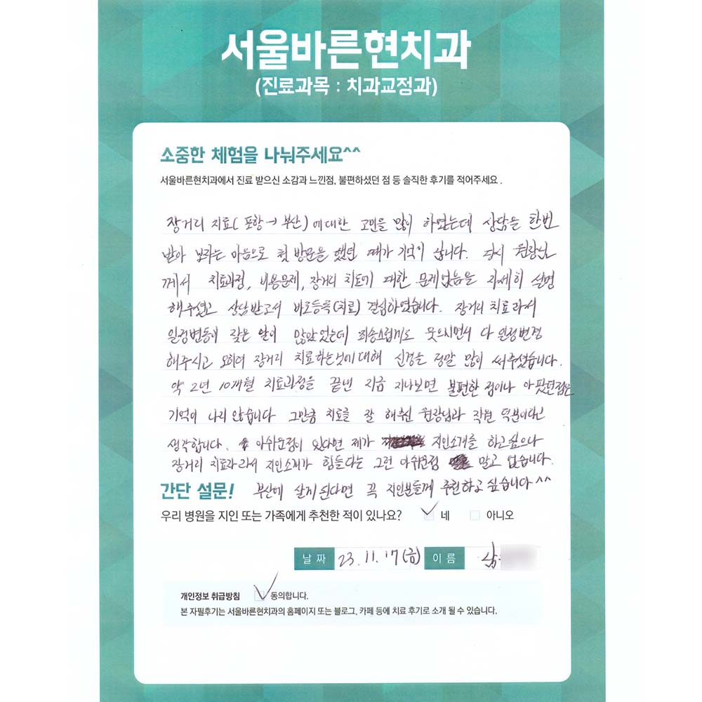여러분의 치아 건강을 위해 항상 최선을 다하는 서울바른현치과가 되겠습니다. 감사합니다! :)
