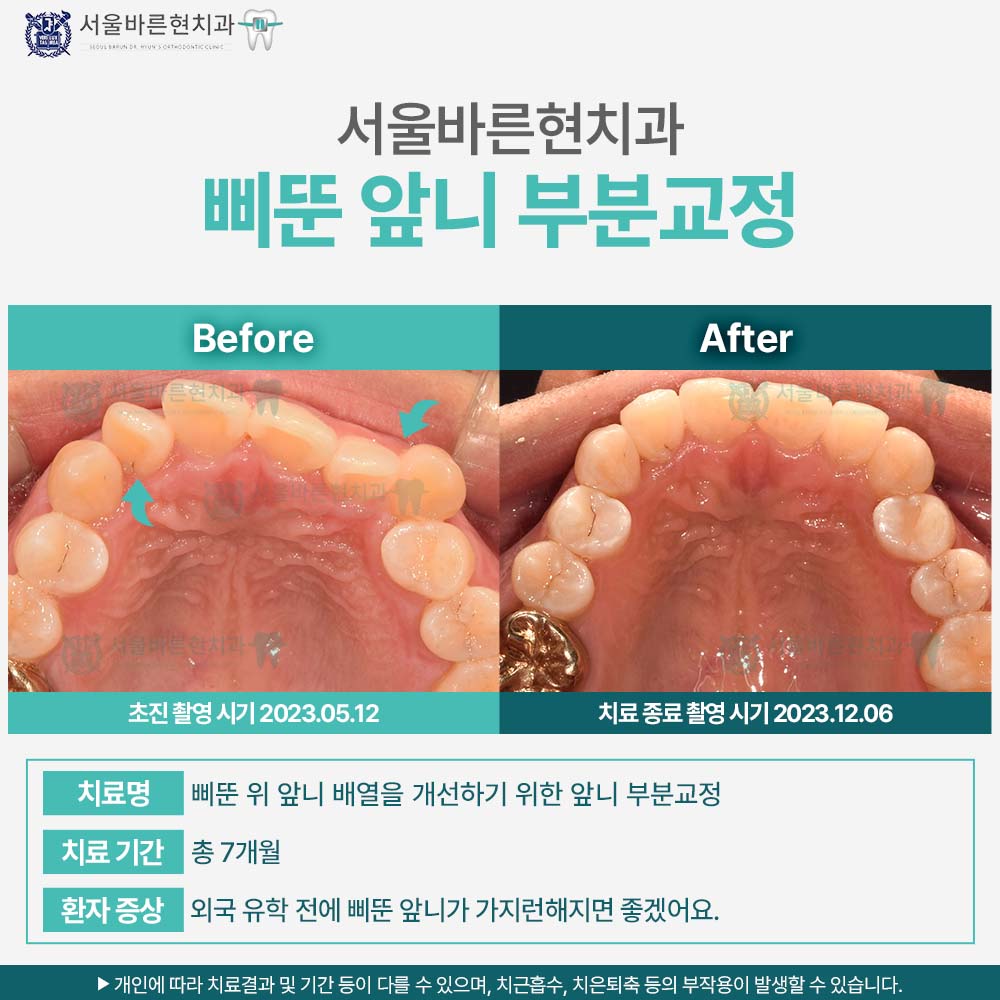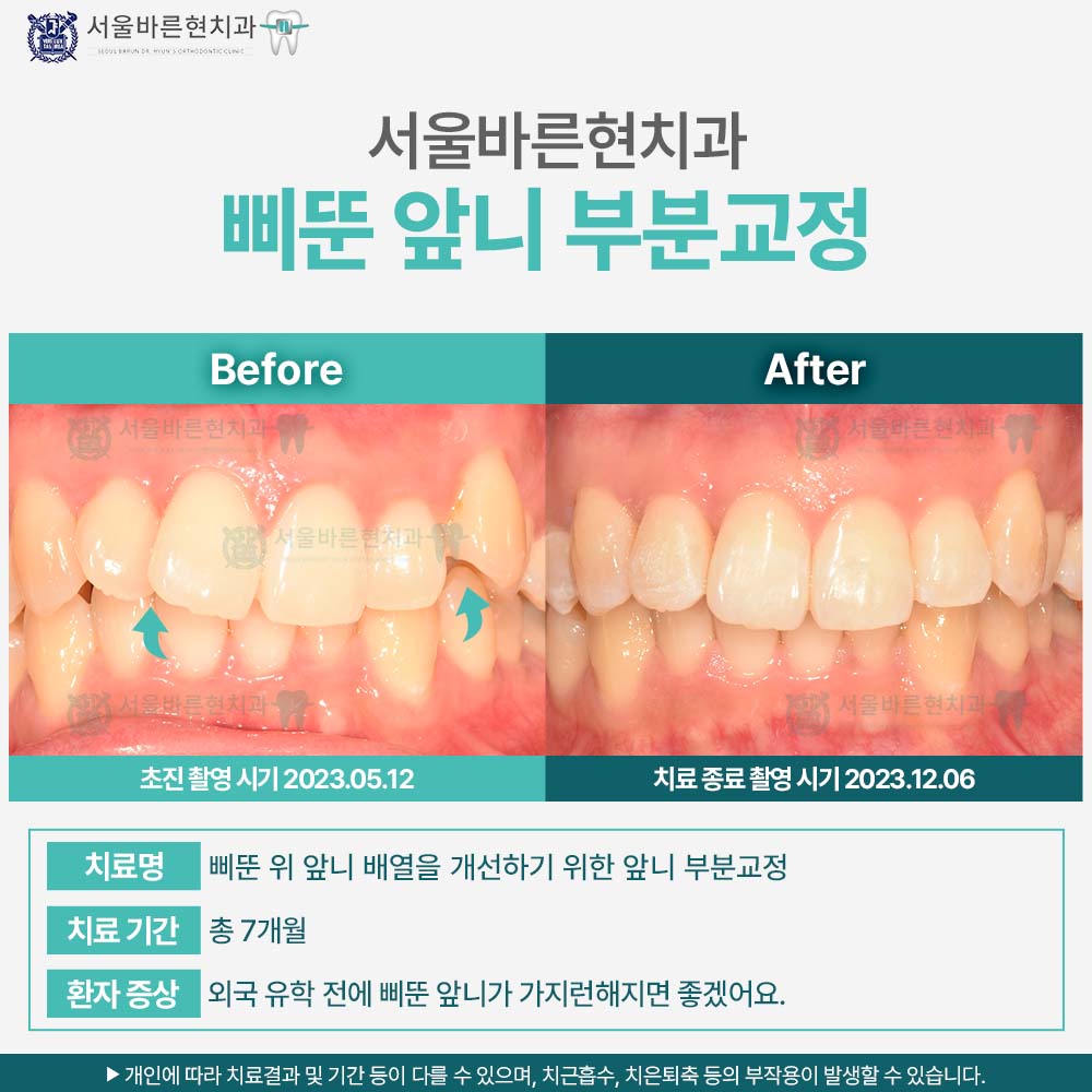 치료명 : 삐뚠 위 앞니 배열을 개선하기 위한 앞니 부분교정