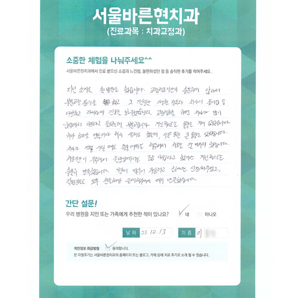 부분교정이라 개인적으로는 통증은 거의 없었습니다.