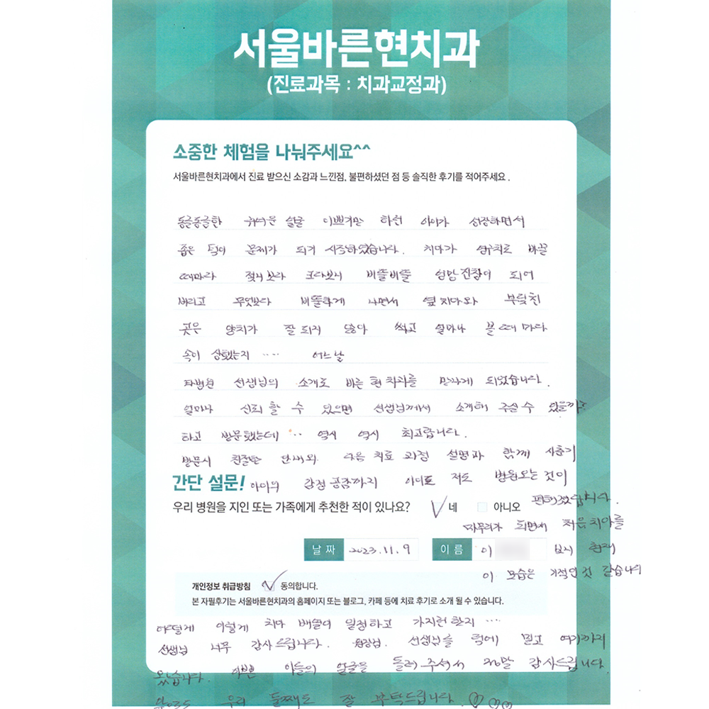 여러분의 치아 건강을 위해 항상 최선을 다하는 서울바른현치과가 되겠습니다. 감사합니다! :)