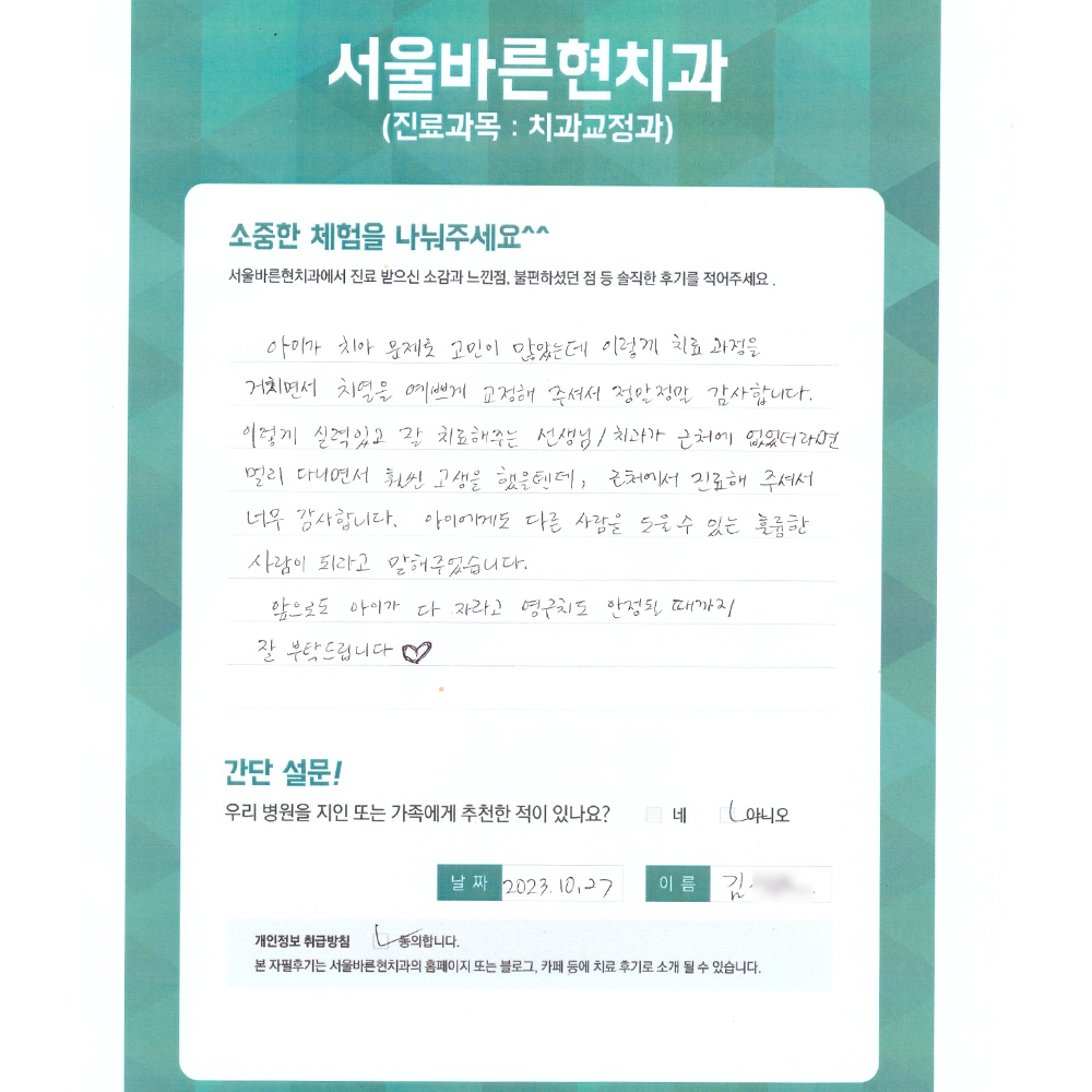 거치면서 치열을 예쁘게 교정해 주셔서 정말 정말 감사합니다.