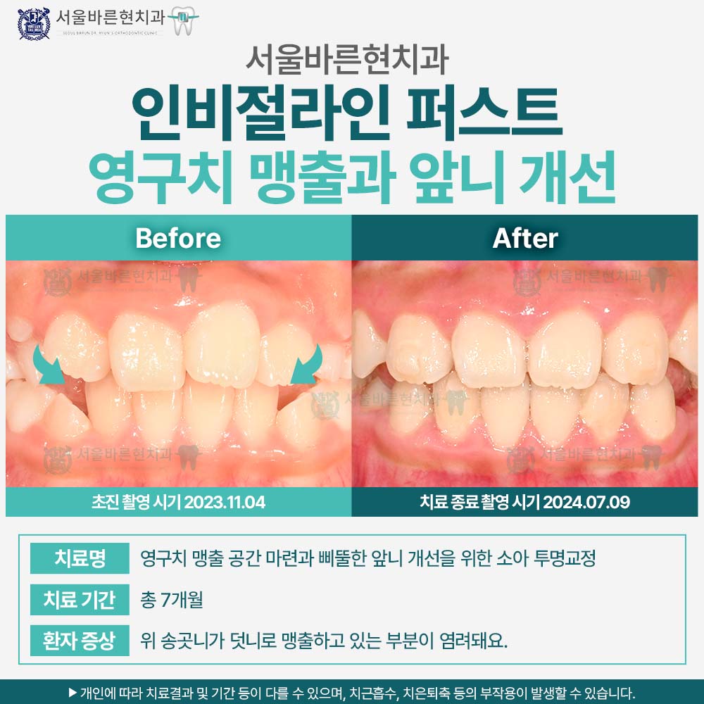 부산 인비절라인 퍼스트, 영구치 맹출과 앞니 개선