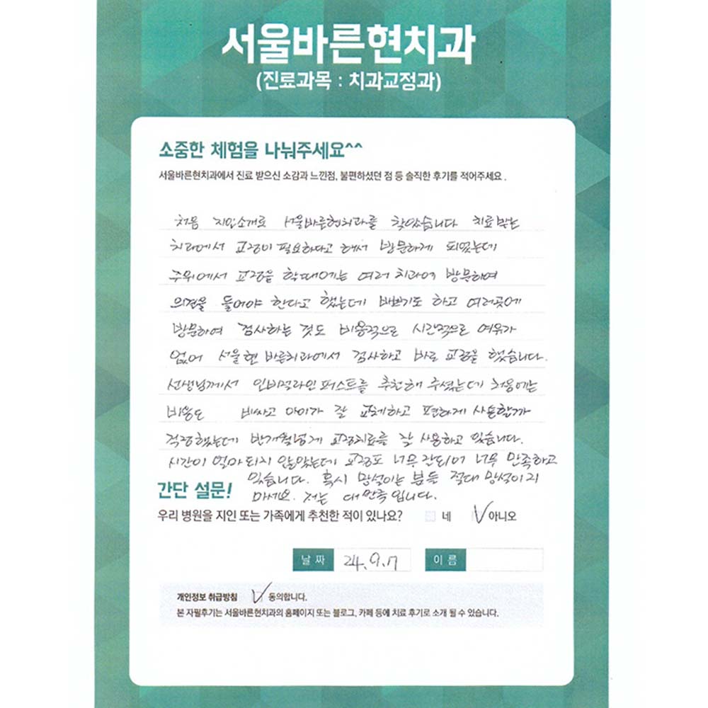 비용적으로 시간적으로 여유가 없어 서울바른현치과에서