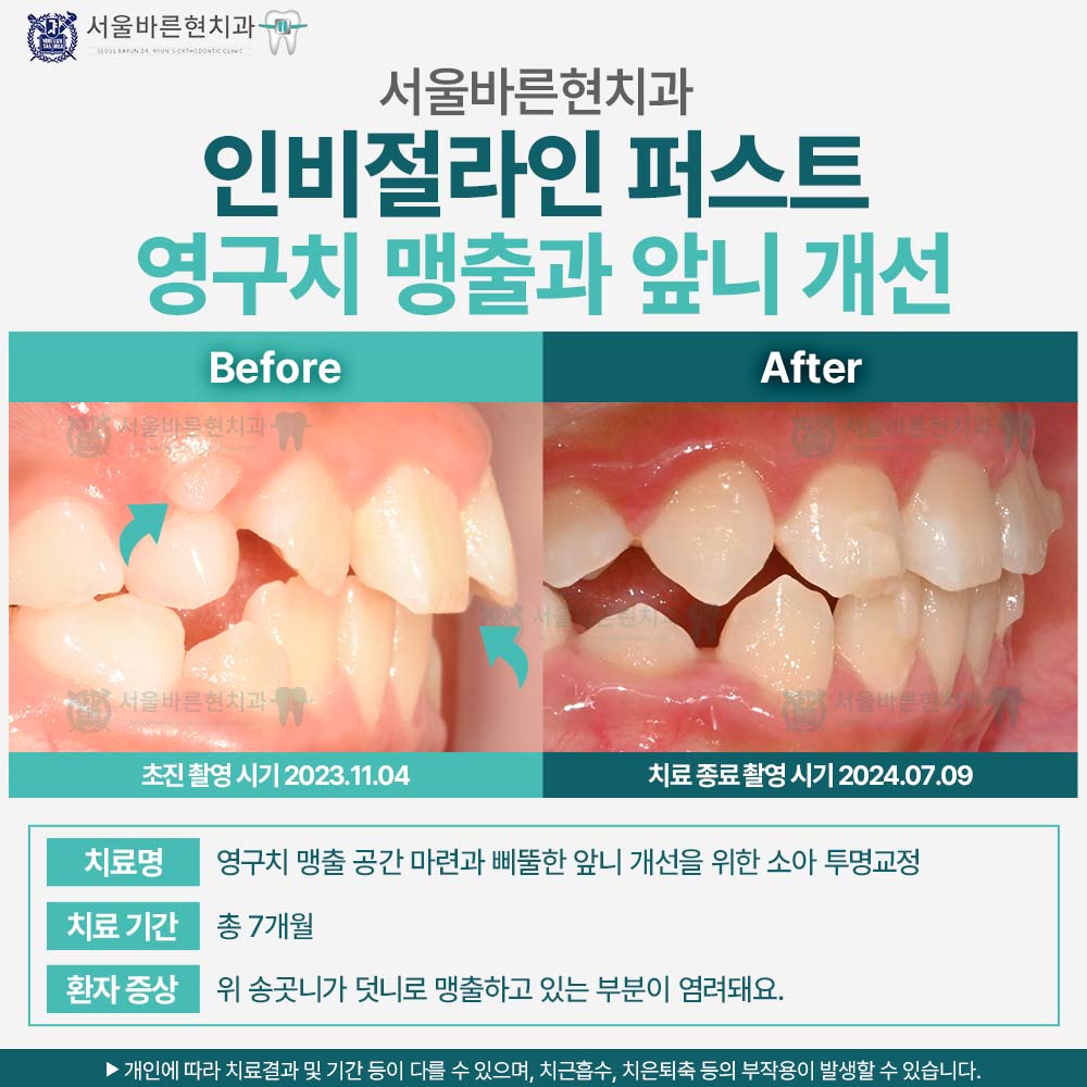 부산 인비절라인 퍼스트, 영구치 맹출과 앞니 개선