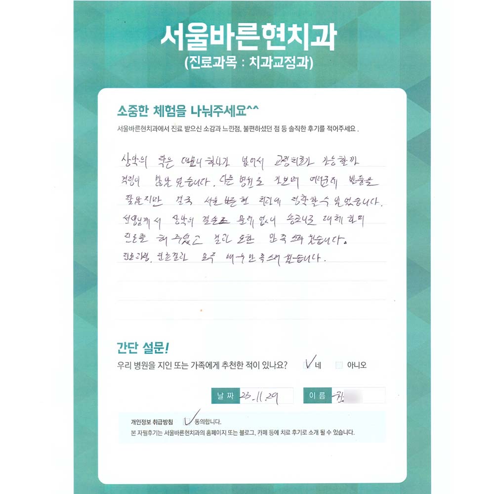 결국 서울바른현치과에 정착할 수 있었습니다.