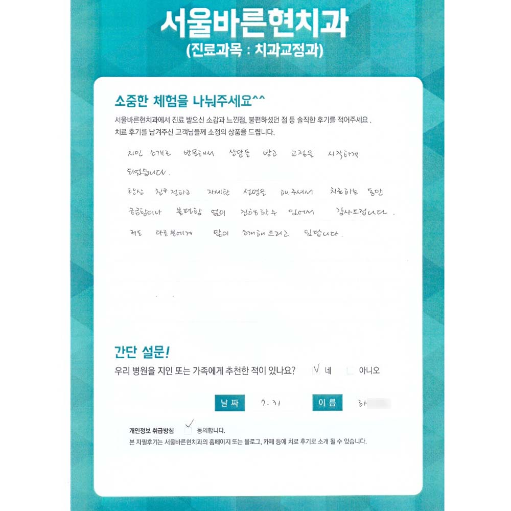 지인 소개로 방문해서 상담을 받고 교정을 시작하게 되었습니다.