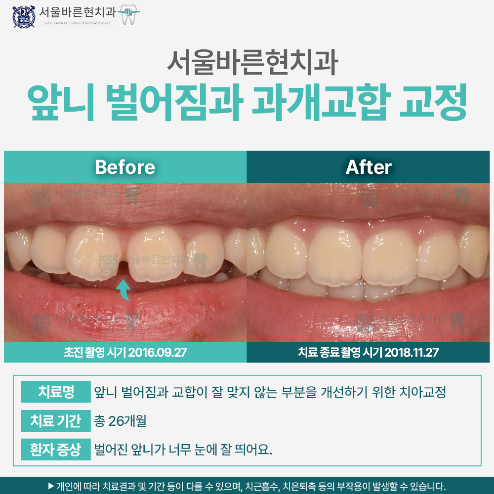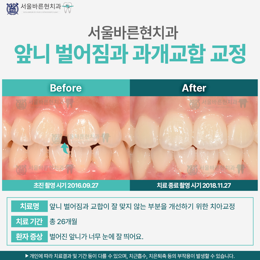부산 치아교정 앞니 벌어짐과 과개교합 교정