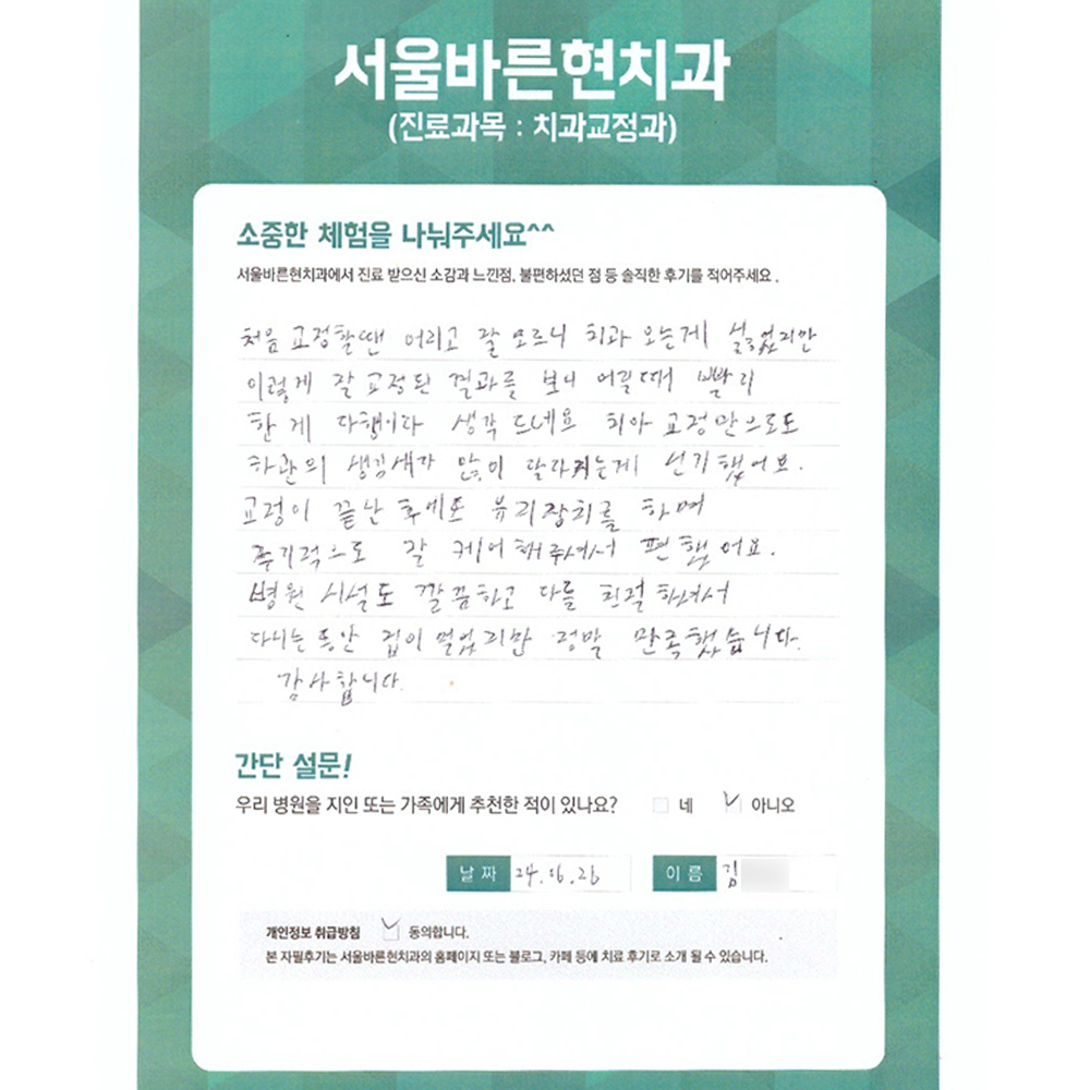 교정이 끝난 후에는 유지장치를 하며 주기적으로 잘 케어해 주셔서 편했어요.