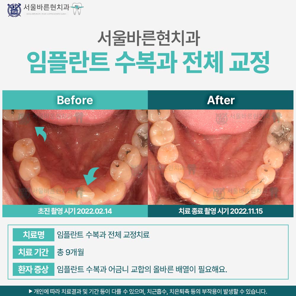 치료 중에 아내분도 아래 앞니 사이 공간을 모으기 위한 부분교정을 진행하셨습니다. 주어진 시간 내에서 최선을 다해 치료를 도와드렸고 호주로 출국하기 전 치아 상실부위 임플란트 수복까지 완료하고 활짝 웃는 모습으로 치료를 마무리했습니다.