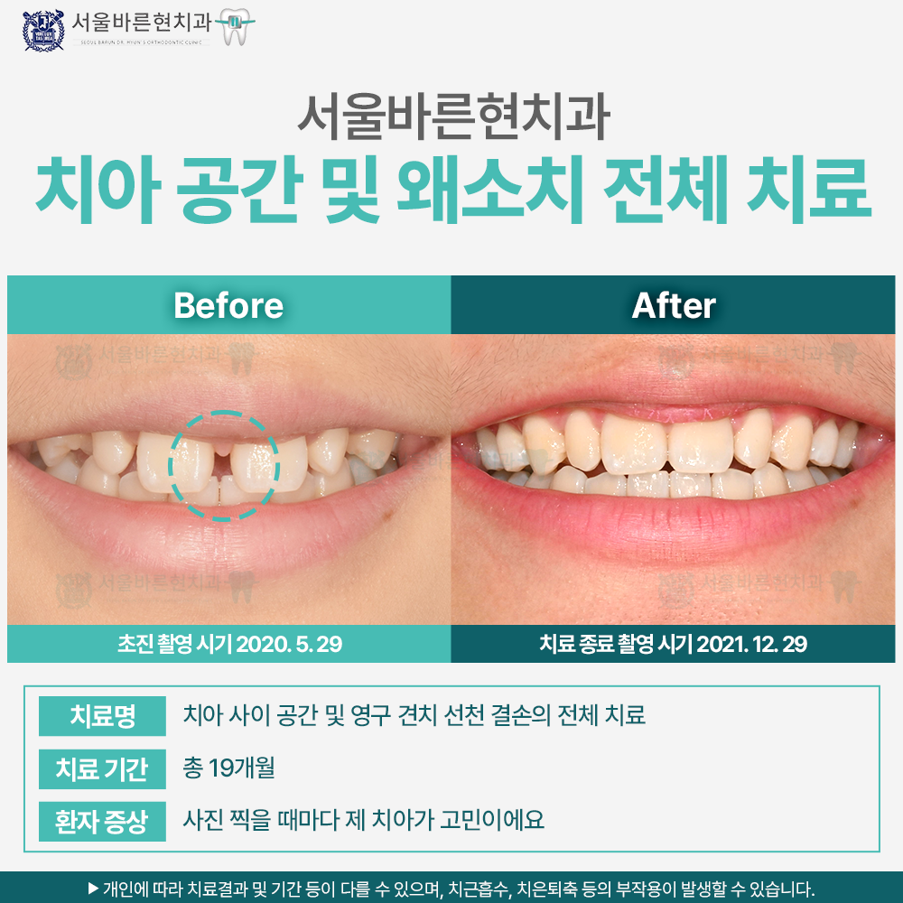 증상 : 사진 찍을 때마다 제 치아가 고민이에요.