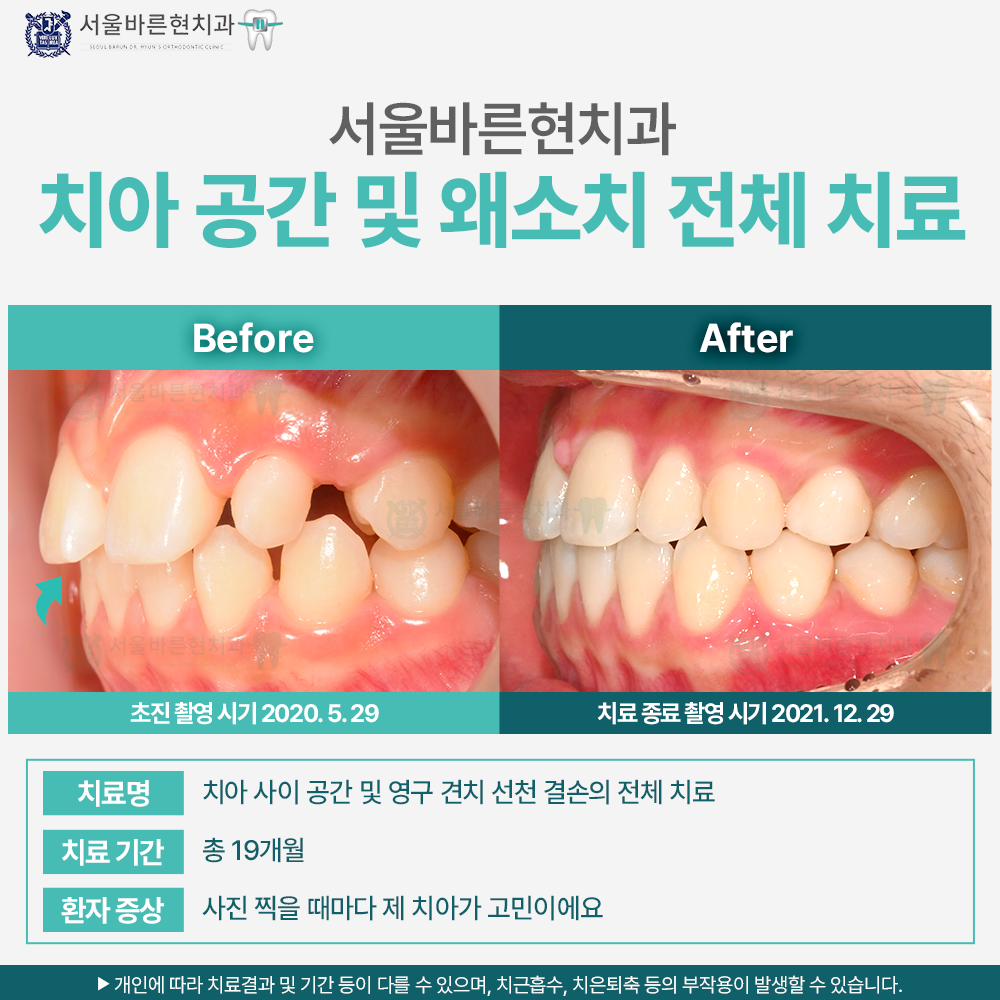 치료명 : 치아 사이 공간 및 영구 견치 선천 결손의 전체 치료