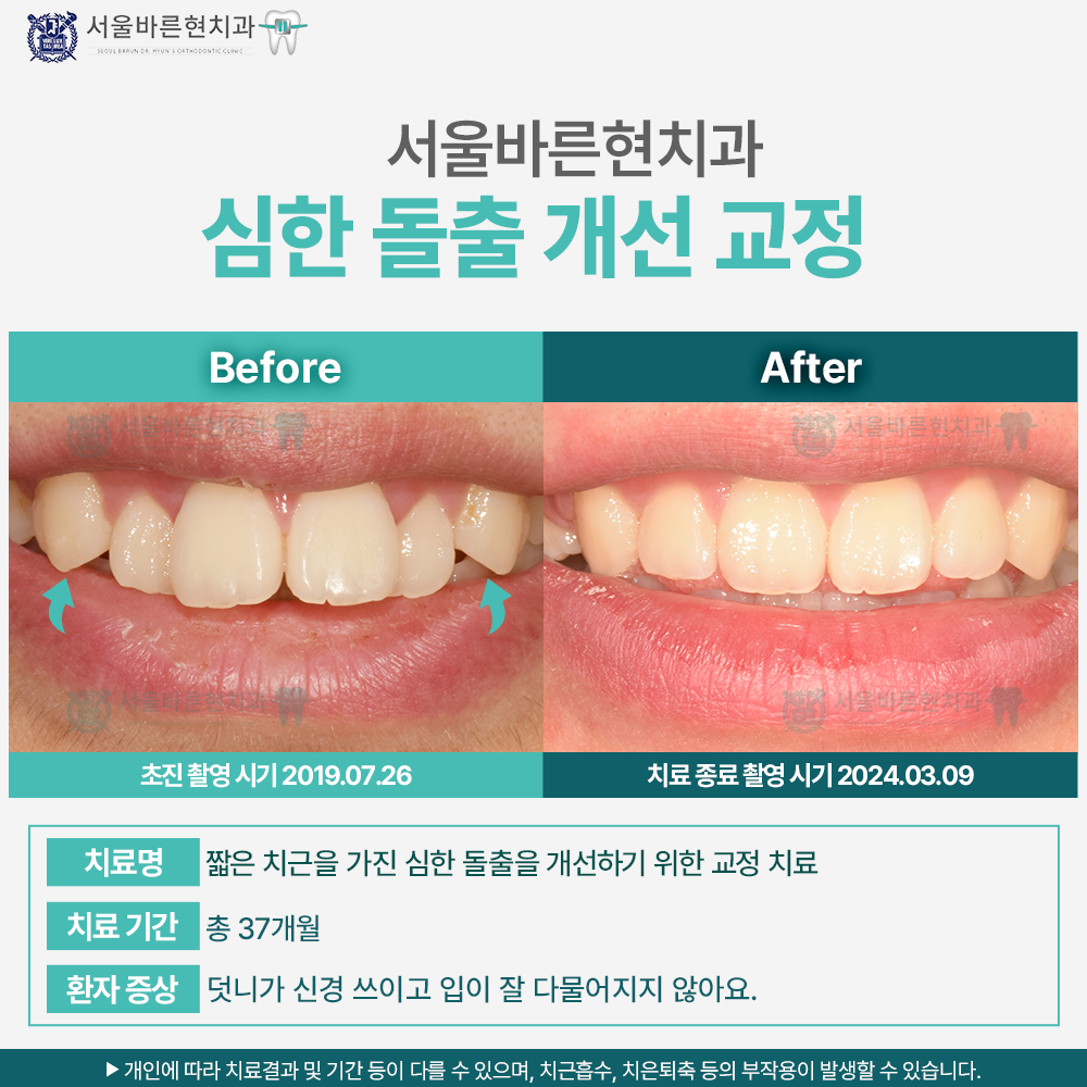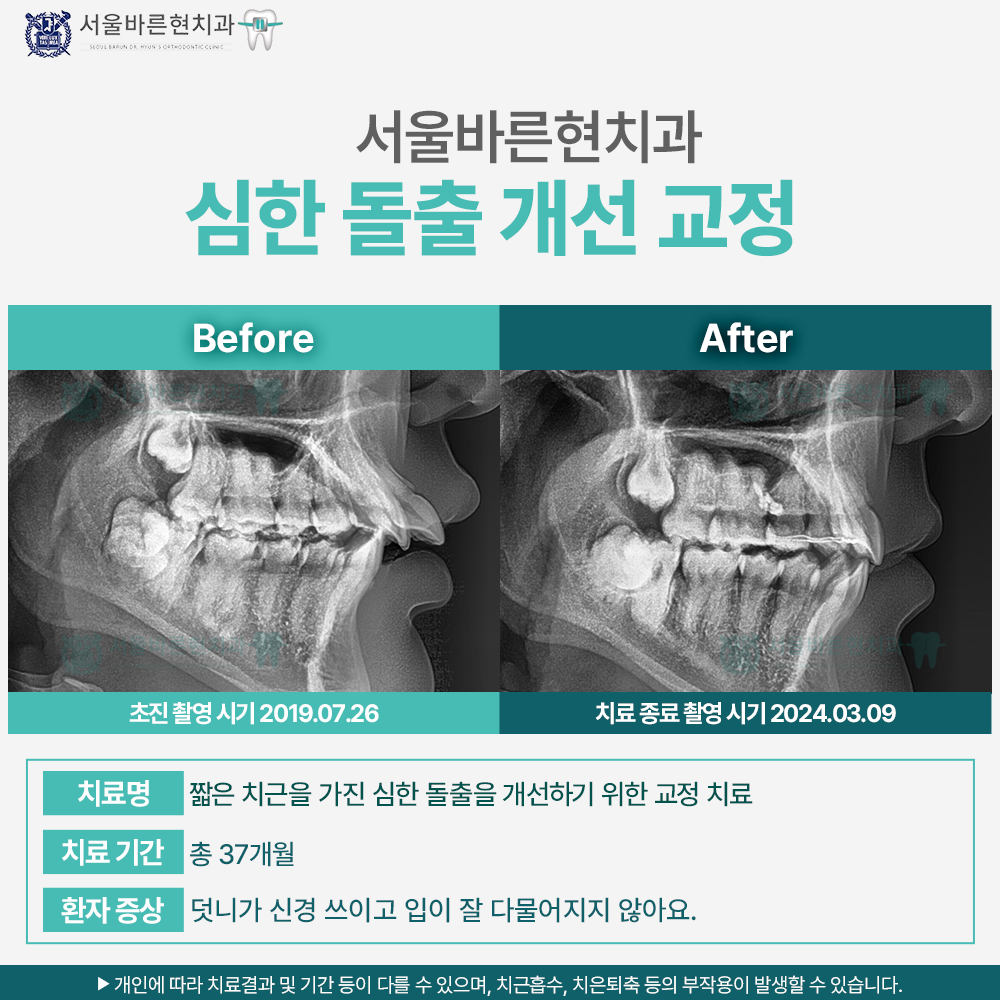 치료명 : 짧은 치근을 가진 심한 돌출을 개선하기 위한 교정 치료