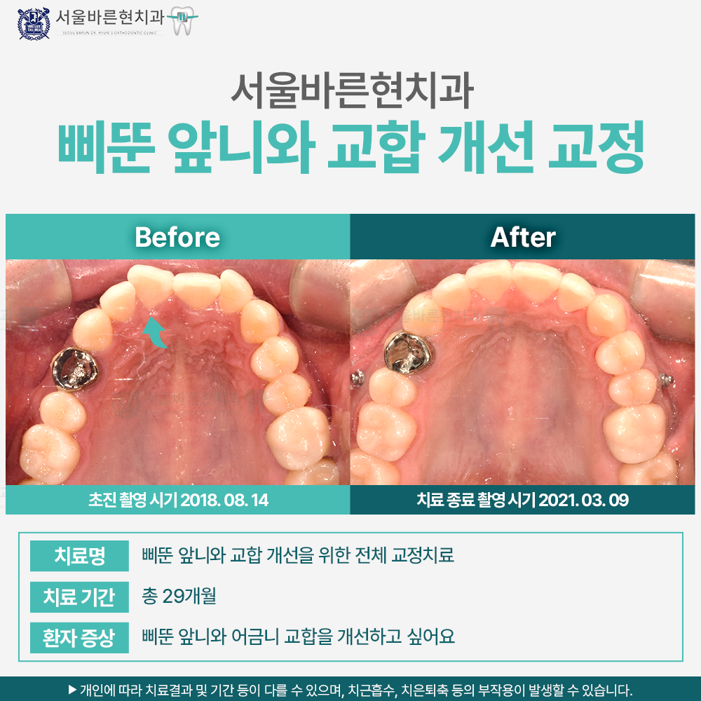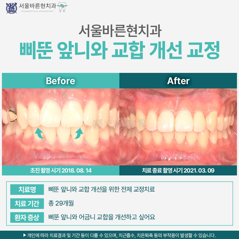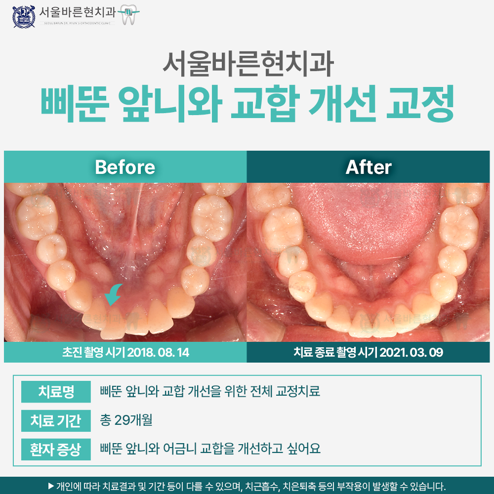 치료명 : 삐뚠 앞니와 교합 개선을 위한 전체 교정치료