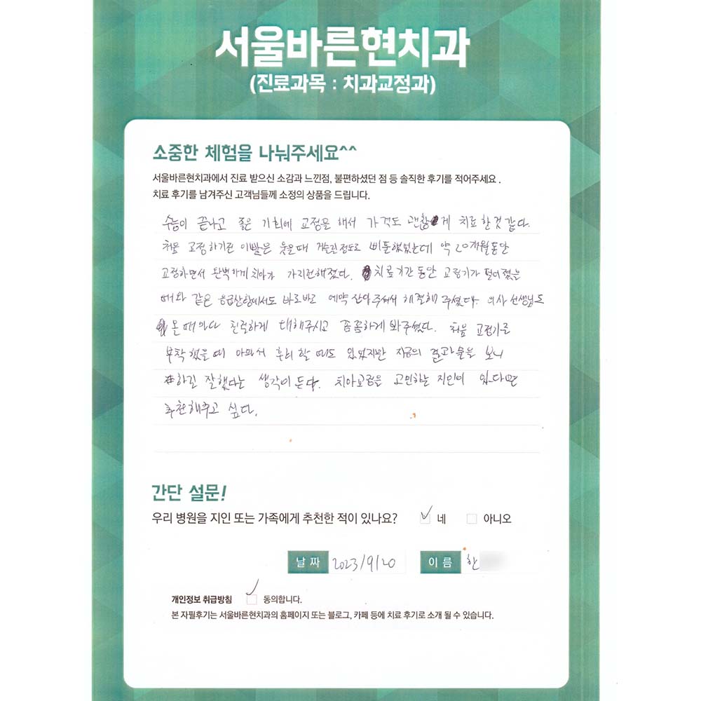 여러분의 치아 건강을 위해 항상 최선을 다하는 서울 바른 현치과가 되겠습니다. 감사합니다! :)
