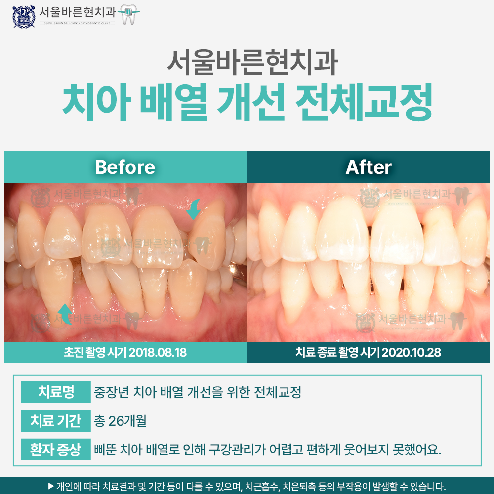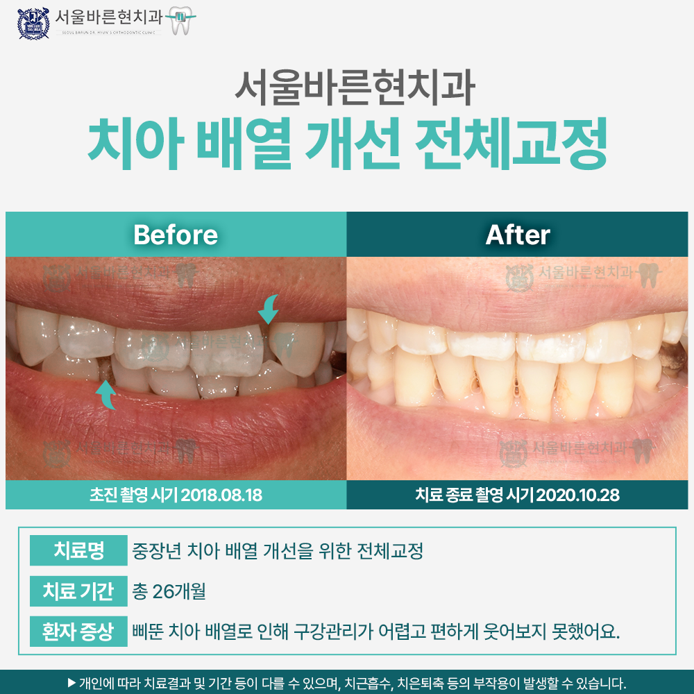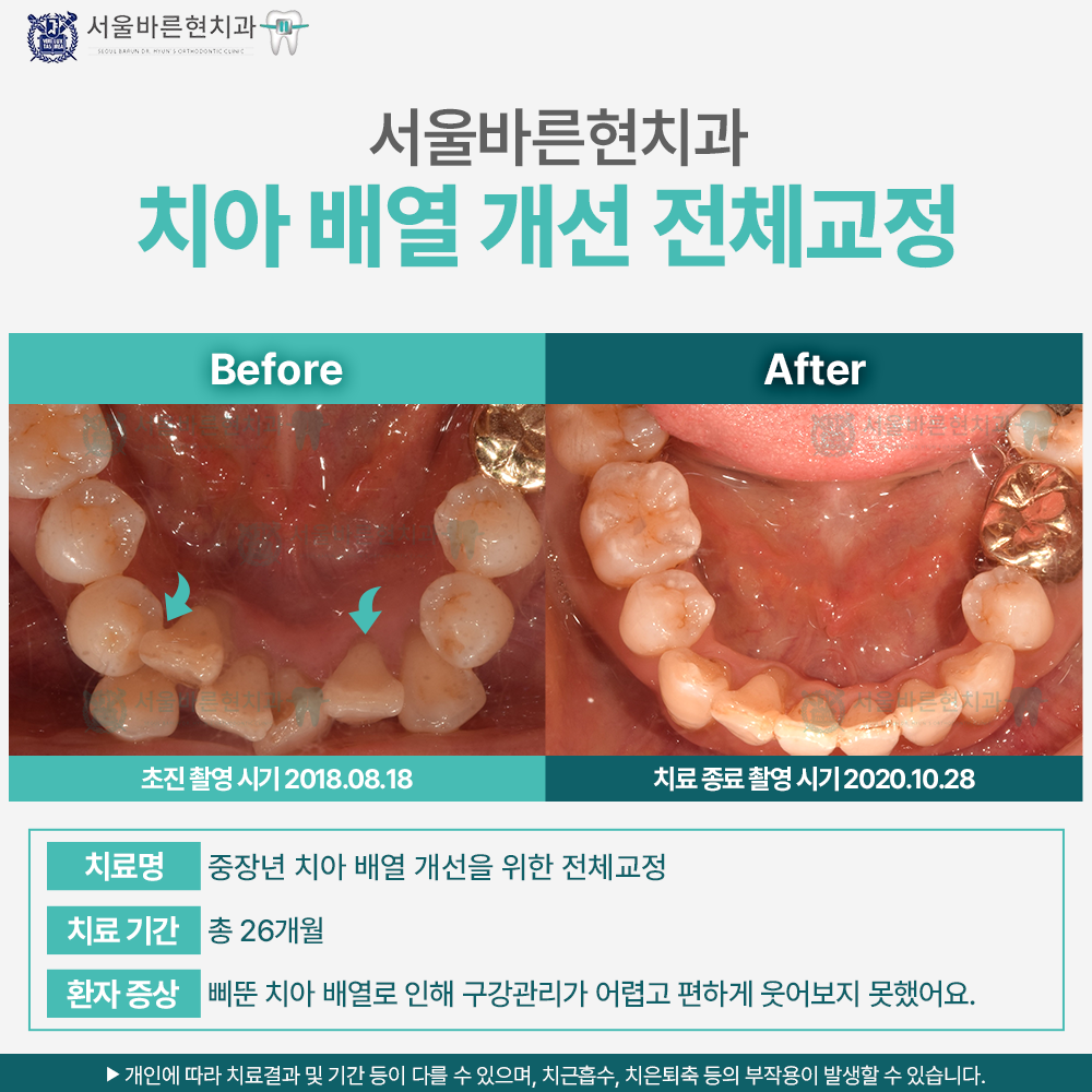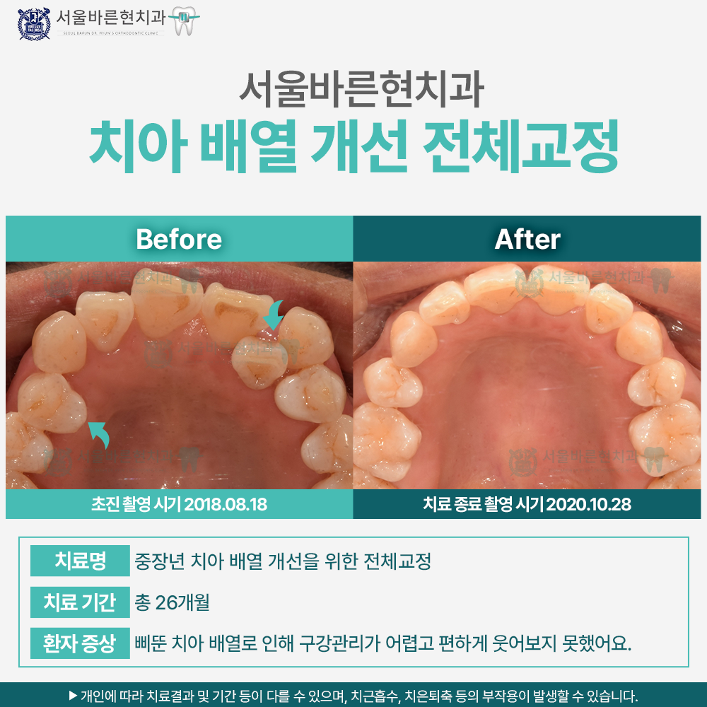 치료명 : 중장년 치아 배열 개선을 위한 전체교정
