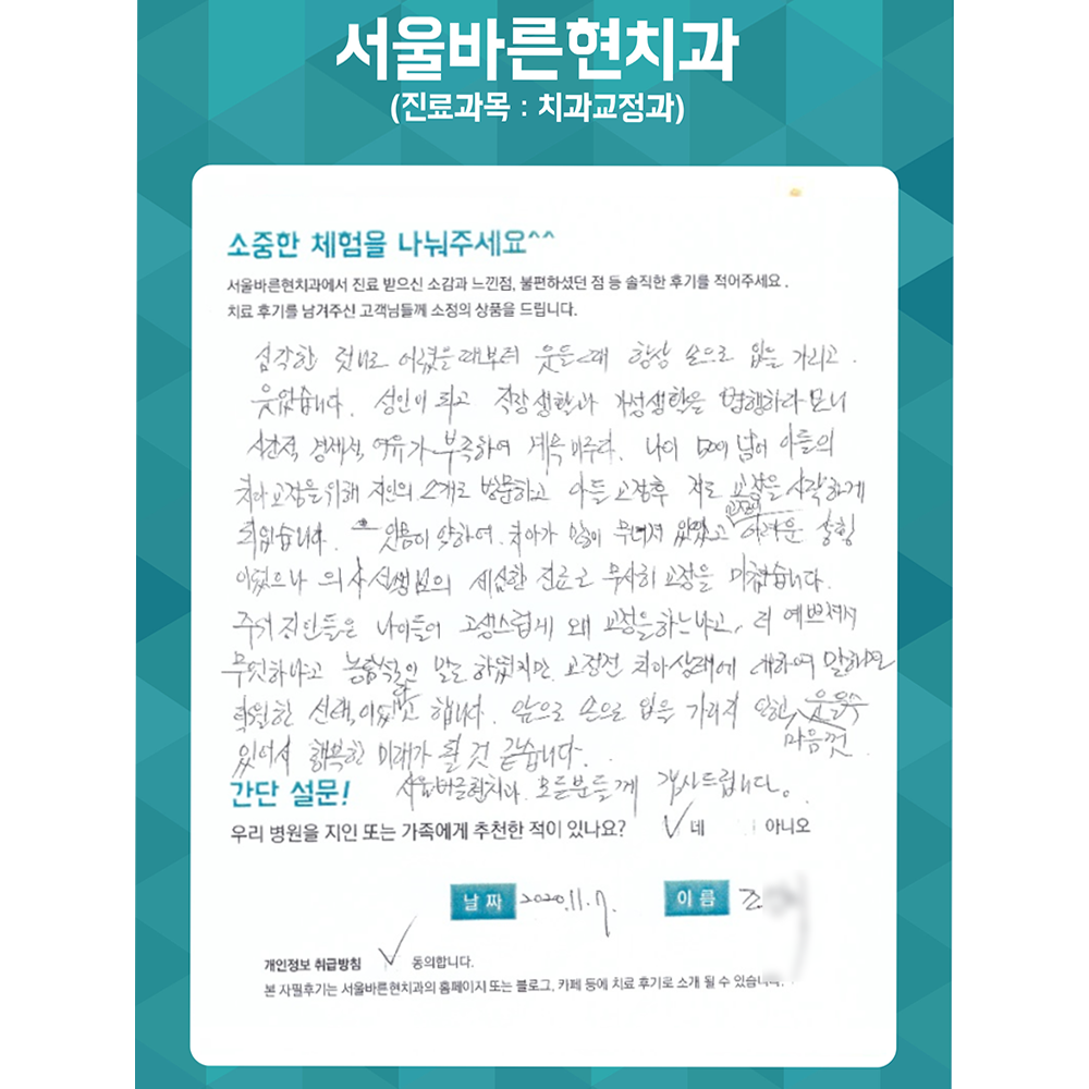 여러분의 치아 건강을 위해 항상 최선을 다하는 서울바른현치과가 되겠습니다. 감사합니다! :)