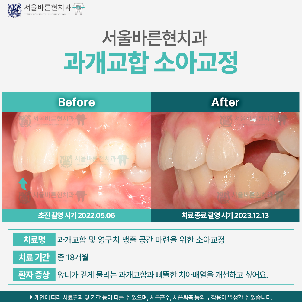 치료명 : 과개교합 및 영구치 맹출 공간 마련을 위한 소아교정