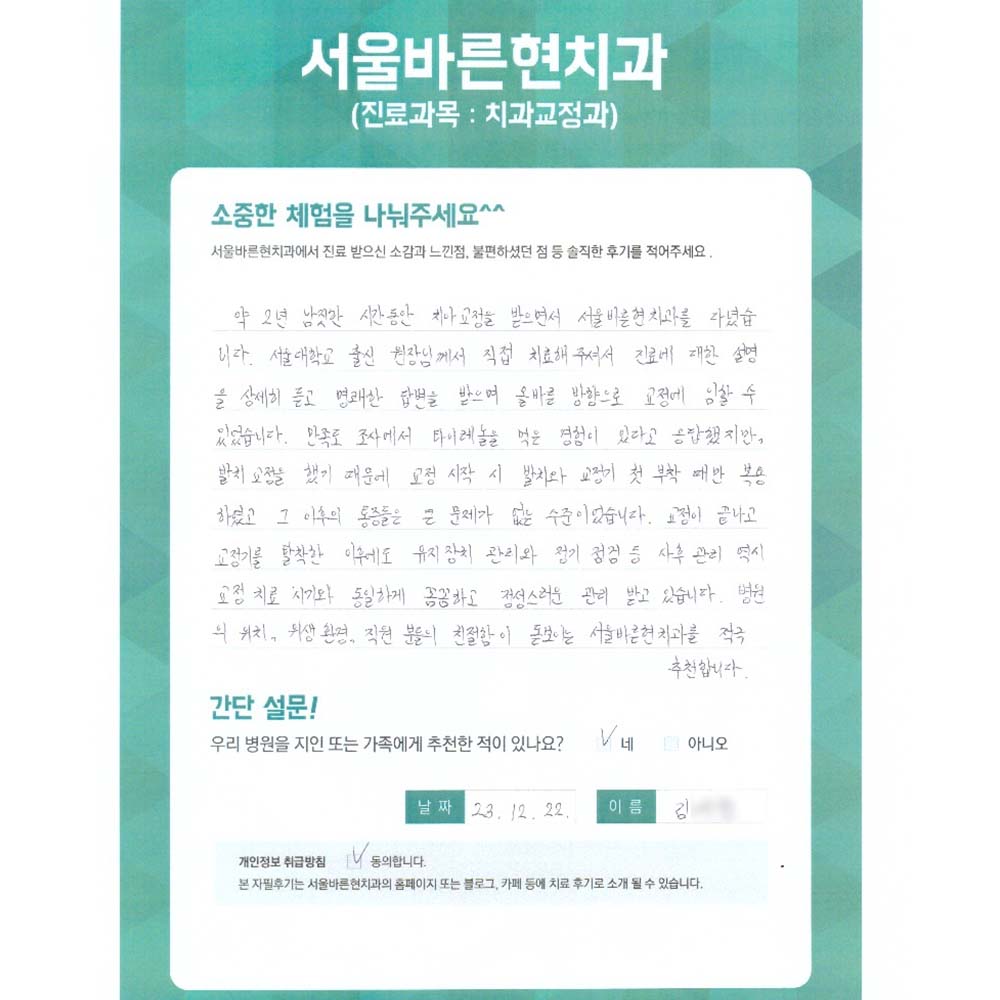 약 2년 남짓한 시간동안 치아교정을 받으면서 서울바른현치과를 다녔습니다.