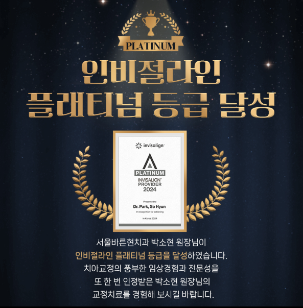 서울바른현치과 인비절라인 플래티넘 등급 달성
